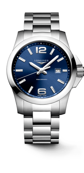 Longines Conquest, sportif zarafetin İsviçre yorumu. L888 ve L592 kalibreli otomatik veya hassas Quartz mekanizma seçenekleri. 30 bar su dayanıklılığı ile yüzme ve dalışa uygun. Pırlanta indeksler, 18K altın detaylar ve safir kristal cam. 29.50mm’den 43mm’e geniş kasa seçenekleri. Yetkili bayi güvencesiyle Baz Gold’da.