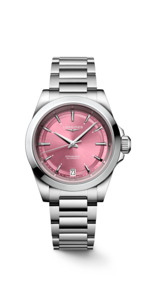 Longines Conquest, sportif zarafetin İsviçre yorumu. L888 ve L592 kalibreli otomatik veya hassas Quartz mekanizma seçenekleri. 30 bar su dayanıklılığı ile yüzme ve dalışa uygun. Pırlanta indeksler, 18K altın detaylar ve safir kristal cam. 29.50mm’den 43mm’e geniş kasa seçenekleri. Yetkili bayi güvencesiyle Baz Gold’da.