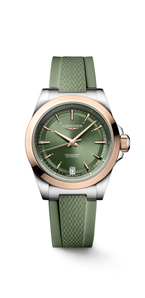 Longines Conquest, sportif zarafetin İsviçre yorumu. L888 ve L592 kalibreli otomatik veya hassas Quartz mekanizma seçenekleri. 30 bar su dayanıklılığı ile yüzme ve dalışa uygun. Pırlanta indeksler, 18K altın detaylar ve safir kristal cam. 29.50mm’den 43mm’e geniş kasa seçenekleri. Yetkili bayi güvencesiyle Baz Gold’da.