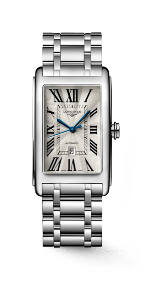 Longines DolceVita, İtalyan “tatlı yaşam” felsefesinden ilham alan Art Deco şaheseri. Dikdörtgen kasa tasarımı, 18 ayar sarı ve kırmızı altın seçenekleri. L176, L178 ve L963 kalibreli İsviçre Quartz mekanizmalar. Top Wesselton IF-VVS pırlanta bezeli kasalar, Flinqué kadran işçiliği, mavi çelik ibreler, Roma rakamları. 17.70mm’den 23.30mm’e kasa genişlikleri. Timsah kayış ve çelik bilezik alternatifleri. Yetkili bayi güvencesiyle Baz Gold’da.
