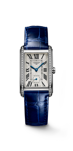 Longines DolceVita, İtalyan “tatlı yaşam” felsefesinden ilham alan Art Deco şaheseri. Dikdörtgen kasa tasarımı, 18 ayar sarı ve kırmızı altın seçenekleri. L176, L178 ve L963 kalibreli İsviçre Quartz mekanizmalar. Top Wesselton IF-VVS pırlanta bezeli kasalar, Flinqué kadran işçiliği, mavi çelik ibreler, Roma rakamları. 17.70mm’den 23.30mm’e kasa genişlikleri. Timsah kayış ve çelik bilezik alternatifleri. Yetkili bayi güvencesiyle Baz Gold’da.