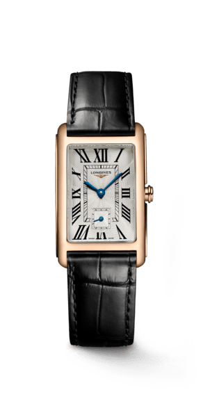 Longines DolceVita, İtalyan “tatlı yaşam” felsefesinden ilham alan Art Deco şaheseri. Dikdörtgen kasa tasarımı, 18 ayar sarı ve kırmızı altın seçenekleri. L176, L178 ve L963 kalibreli İsviçre Quartz mekanizmalar. Top Wesselton IF-VVS pırlanta bezeli kasalar, Flinqué kadran işçiliği, mavi çelik ibreler, Roma rakamları. 17.70mm’den 23.30mm’e kasa genişlikleri. Timsah kayış ve çelik bilezik alternatifleri. Yetkili bayi güvencesiyle Baz Gold’da.