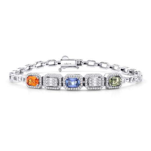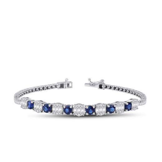 2.96 ct. Diamond Baguette Natural Sapphire Bracelet