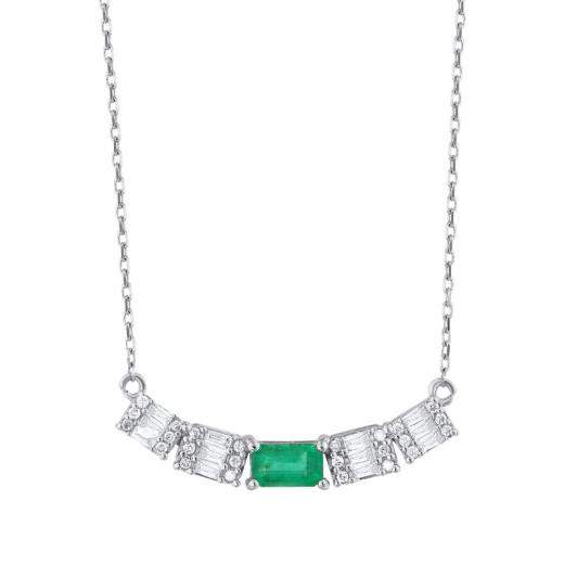 0.48 ct. Diamond Cherry Natural Emerald Baguette Necklace