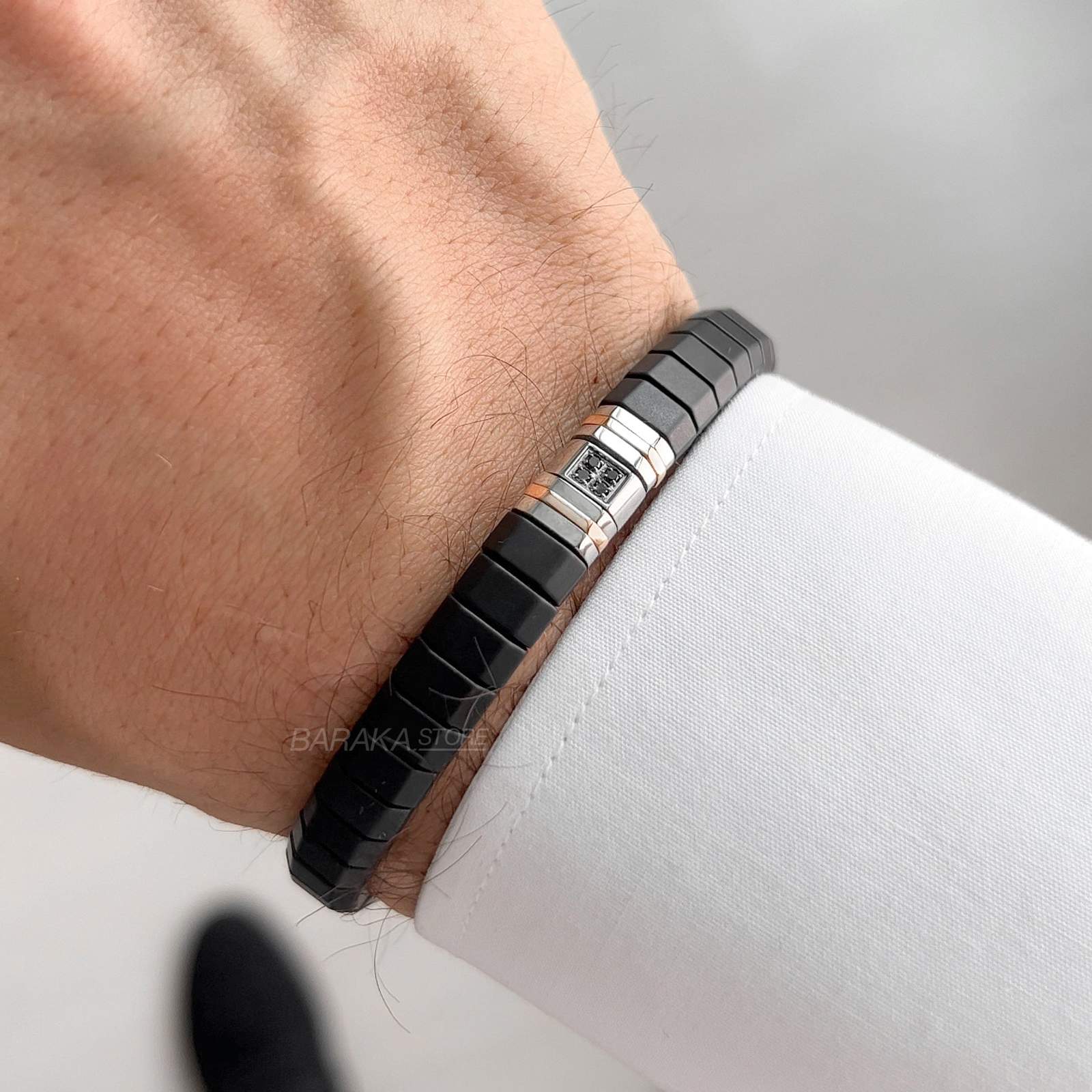 Lüks İtalyan mücevher markası Barakà, özellikle erkek koleksiyonlarıyla tanınır. Tasarımlarında mühendislikten ve mekanik detaylardan (menteşeler, mafsallar gibi) ilham alır. Altın ve pırlanta gibi klasik değerli materyalleri; seramik ve karbon fiber gibi yenilikçi malzemelerle cesurca birleştirerek yüksek teknoloji ile "Made in Italy" zanaatkarlığını buluşturur.