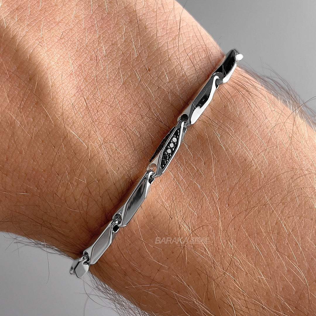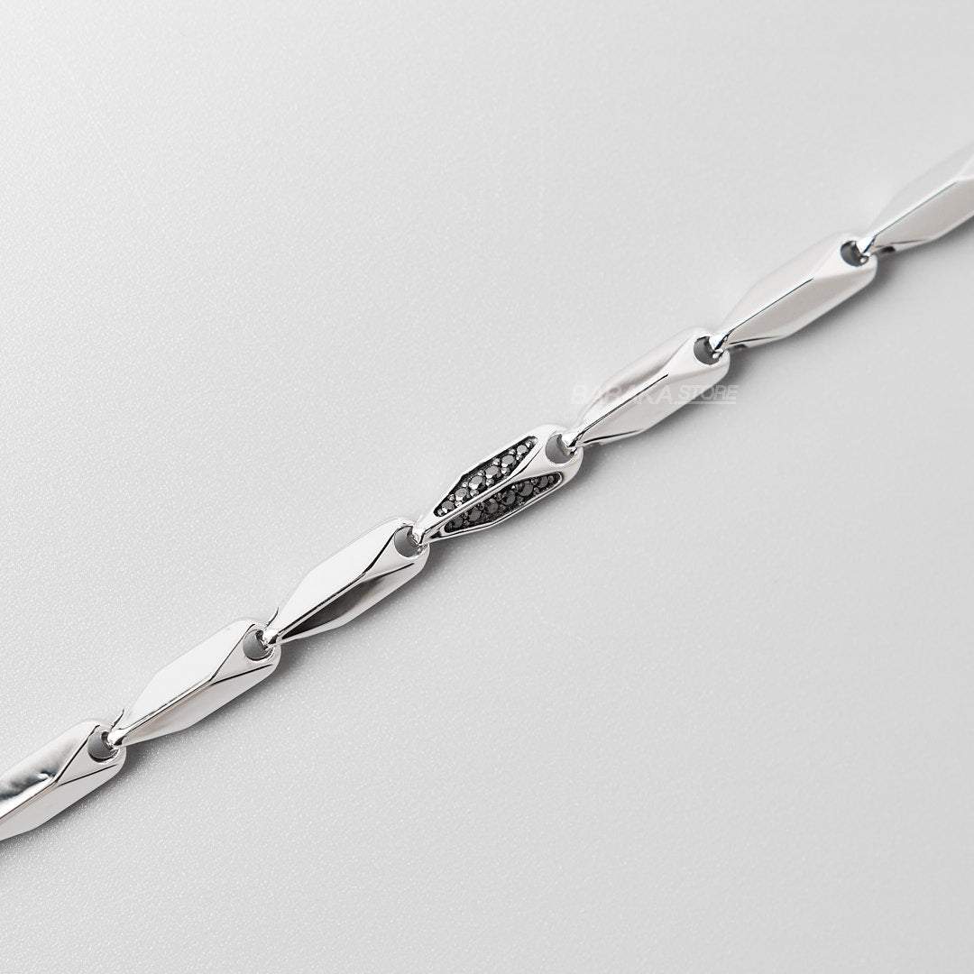 White gold bracelet with black diamonds. White diamond in the clasp.