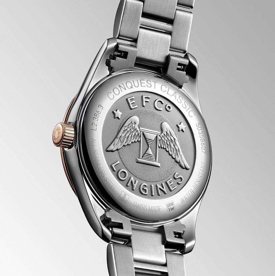 Conquest Classic, Swiss Made quartz mekanizma (Calibre L156) ile çalışır ve saat, dakika, saniye ile birlikte tarih göstergesi fonksiyonlarını sunar. Ayrıca pil azaldığında uyarı veren E.O.L. (End Of Life) özelliği de mevcuttur.